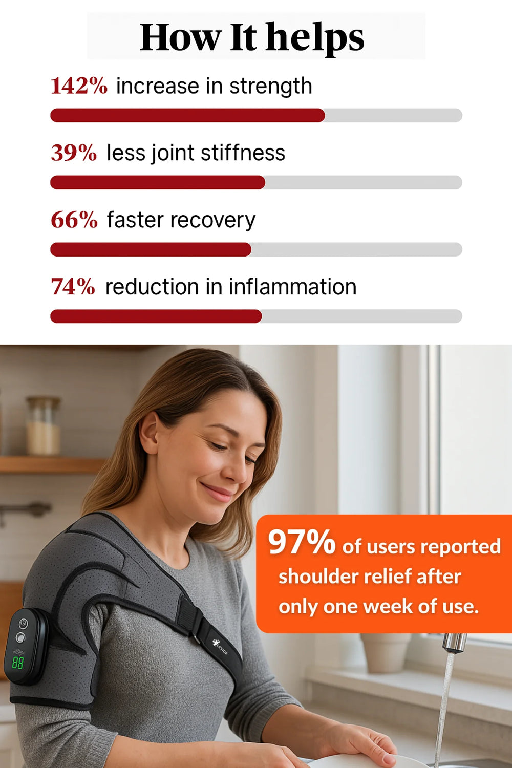 With more than 5,000 five-star reviews, our electric heating shoulder brace has become a customer favourite for fast, reliable pain relief. People love the comfort, the quality, and the real results — and their feedback proves it. When you choose our brace, you’re choosing a product thousands of others already trust to ease shoulder pain and improve everyday mobility.